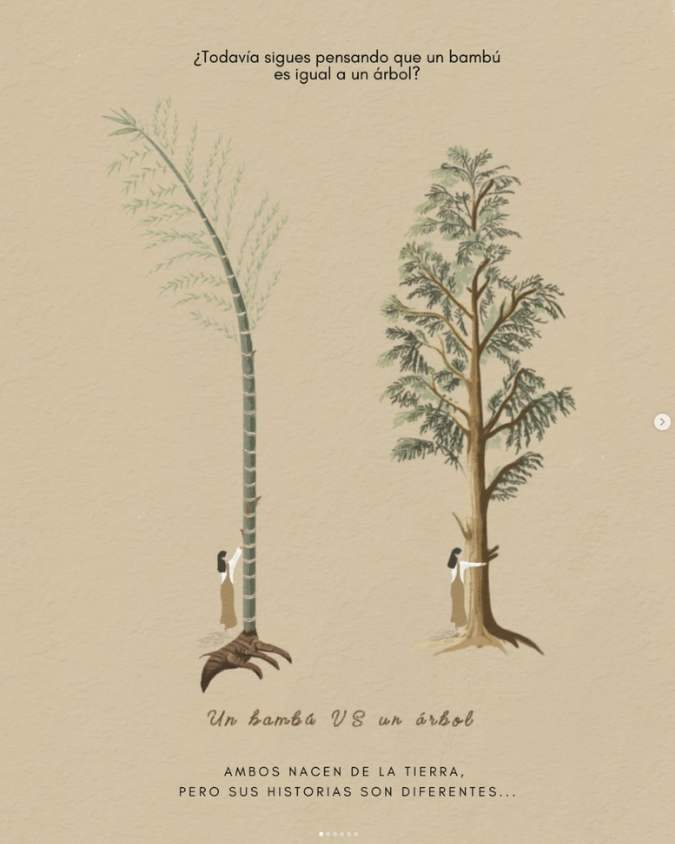 🎋Bambú: Al ser de crecimiento rápido y de regeneración natural, es altamente sostenible. Absorbe más carbono que la mayoría de los árboles y ayuda a prevenir la erosión del suelo.